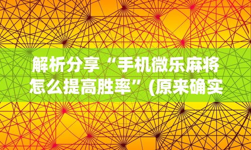 可用版本“微信雀神广东麻将有挂吗”(必备工具)辅助教学